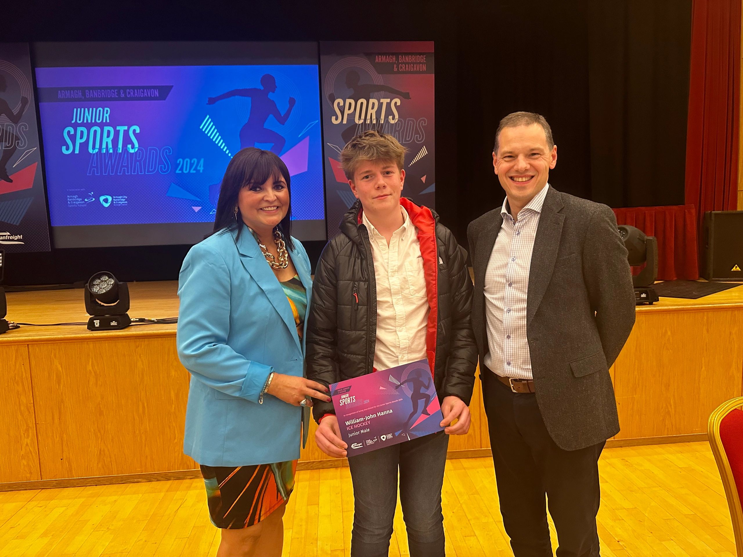 Very proud moment last night as the ‘Big Man’ received his award from ABC Council for runner up in the prestigious sports awards in the junior male category. Lovely pictures with Denise Watson (U105) Mr McLoughlin (Principle Banbridge Academy) Cllr Mark Baxter and Cllr Tim McClelland.