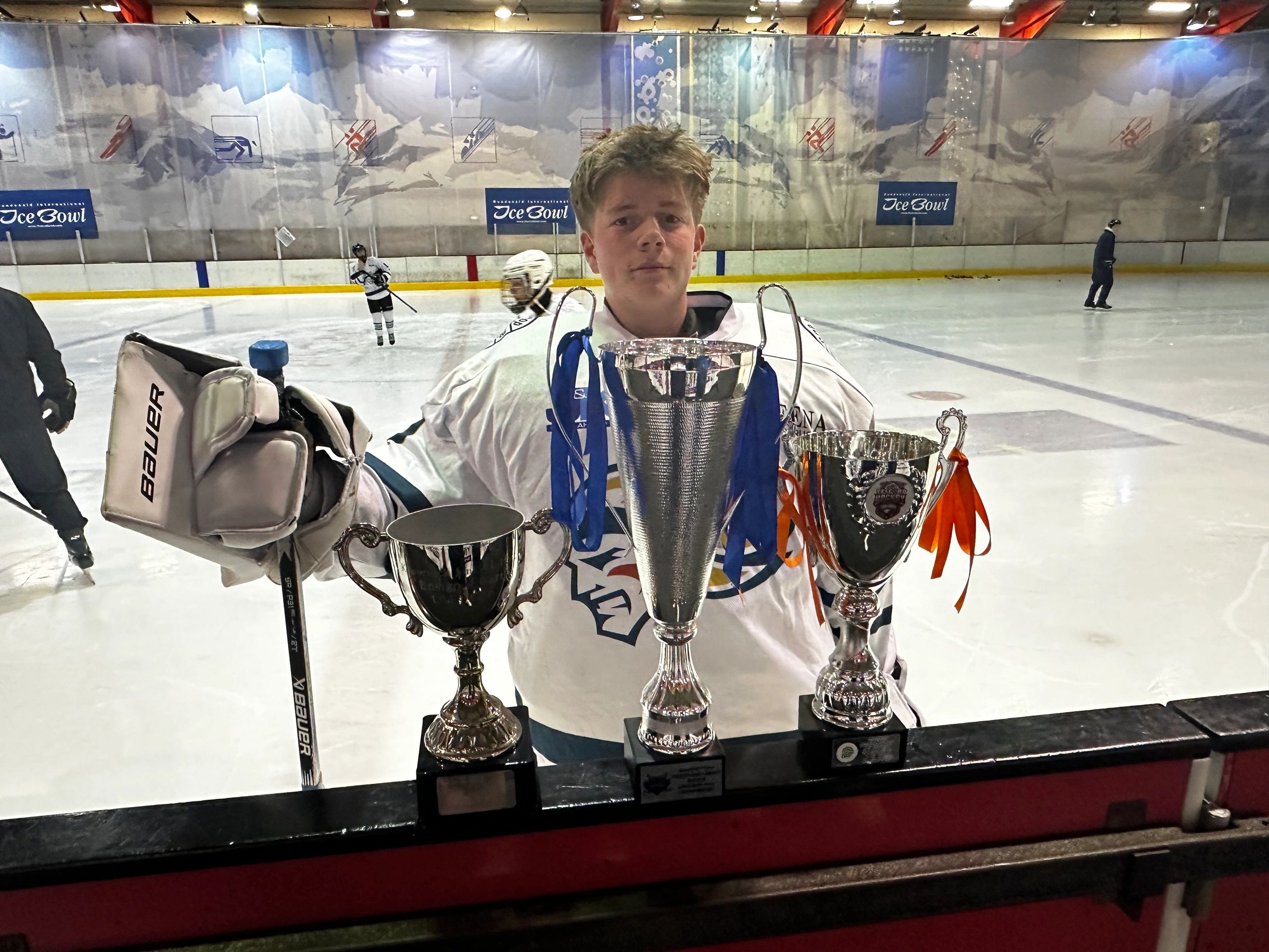 WJ and the Junior Giants played 3 games in less than 24 hours on the road in Scotland. WJ had 2 shut outs and picked up MVP award in Lanarkshire against the fantastic Lightning. Wins against Kilmarnock and North Ayr helped them secure their best finish in a league, just 4 point behind Fife.